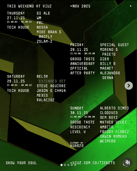 🎟️ Tickets anytime + consumo $50K · Guest List: viuz.com.co/tickets